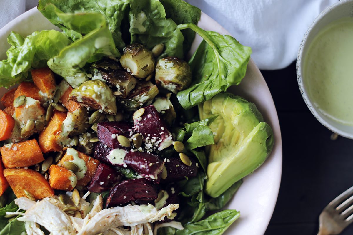 ROASTED BEETS & SWEET POTATO CHICKEN SALAD