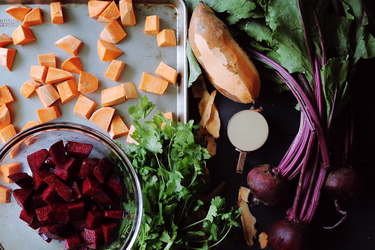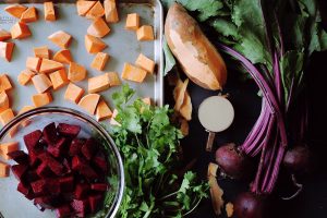 ROASTED BEETS & SWEET POTATO CHICKEN SALAD
