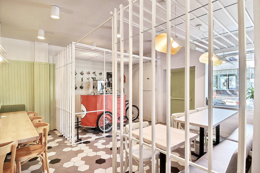 This fresh coffee house in Montreal, Canada revolves around the “Pista Café tricycle”, a bike concept that relies solely on legs and pedals to provide freshly ground coffee beans. Read more here.