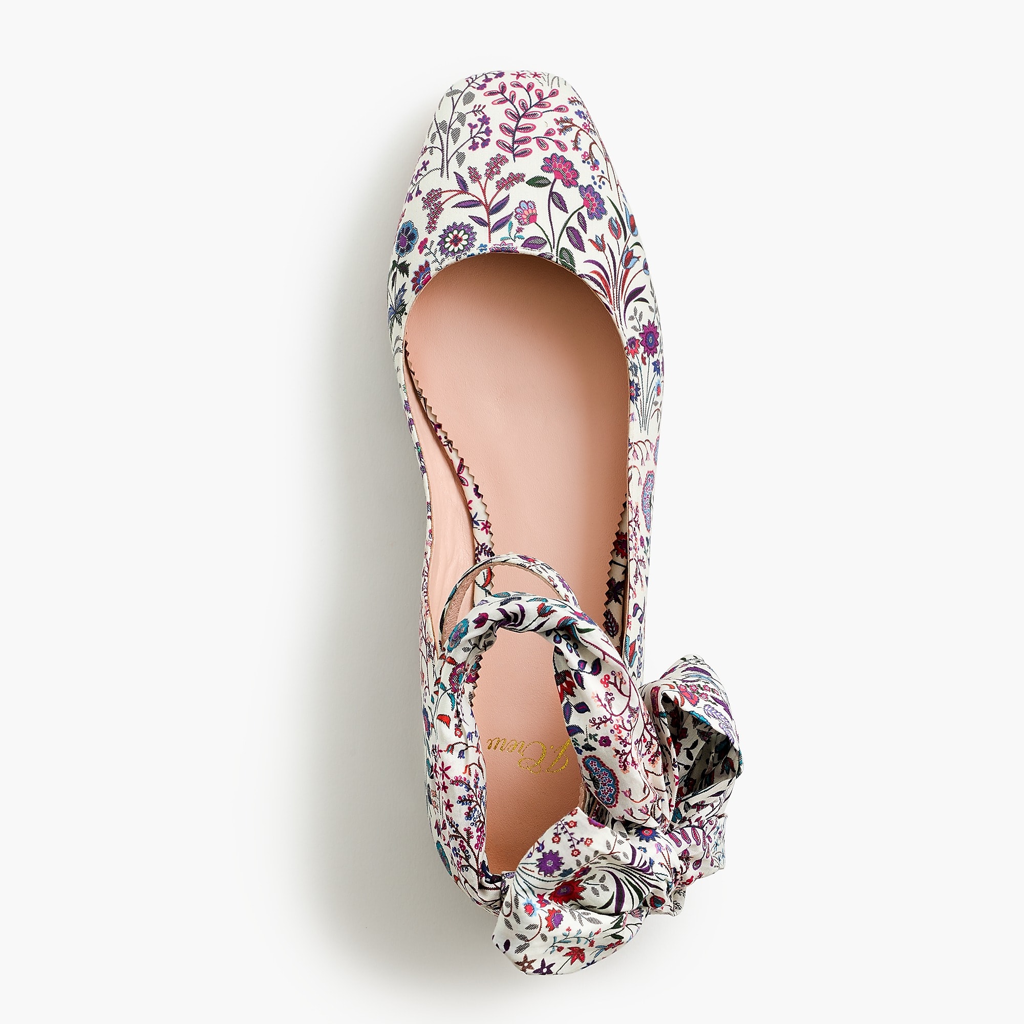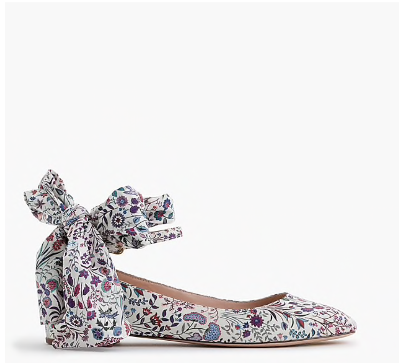 We tweaked the always-classic ballet flat with a subtle square toe and comfortable ankle strap for a little more support. Our favorite finishings? The removable tie and pretty pattern from Liberty (the British print house that’s been known for its mood-lifting florals since 1875).