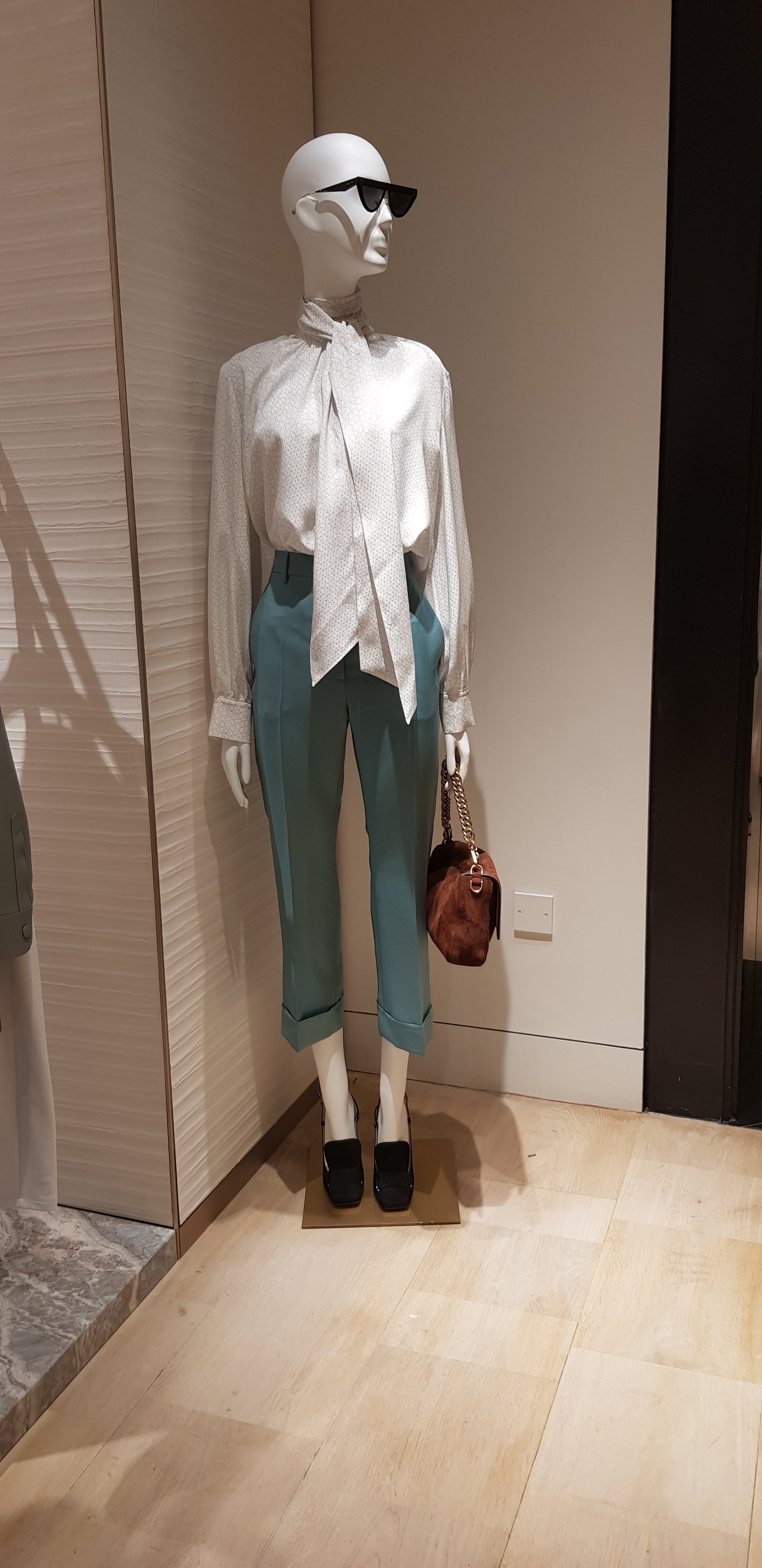 Fashion & Styling 2nd Fendi look Posted by thestyleartisan on 19/08/201919/08/2019 SHIRT White crêpe de Chine blouse £ 790.00FENDI Mohair and wool pants £ 785MINI BAGUETTE Brown suede bag £ 1,350.00SLINGBACK Black nappa leather slingbacks £ 750.00 Share this: Click to share on Facebook (Opens in new window) Facebook Click to share on Pinterest (Opens in new window) Pinterest Click to share on LinkedIn (Opens in new window) LinkedIn Click to share on WhatsApp (Opens in new window) WhatsApp Click to share on Threads (Opens in new window) Threads Click to share on X (Opens in new window) X Click to share on Bluesky (Opens in new window) Bluesky More Click to share on X (Opens in new window) X Like Loading...