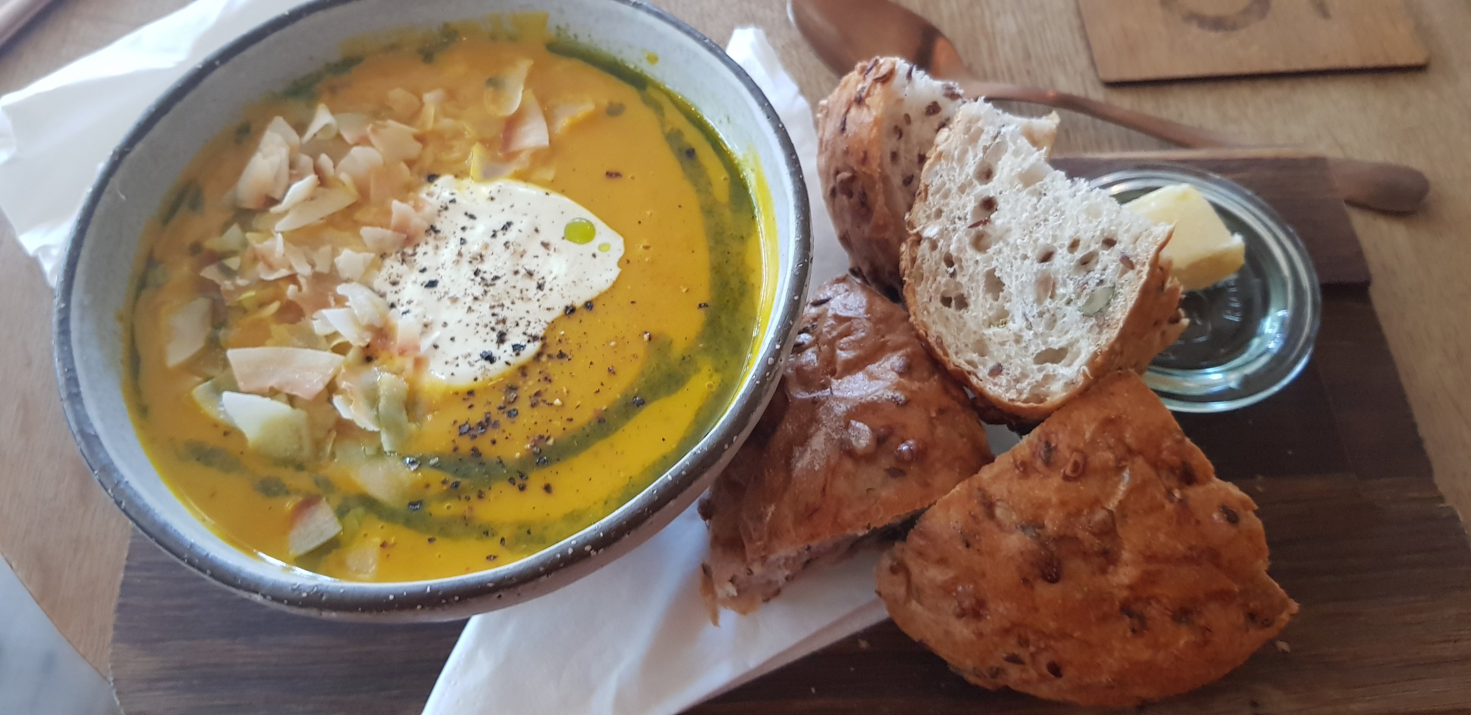 - Tip the butternut squash into the pan, add 850ml hot vegetable stock and 4 tbsp crème fraîche, then whizz with a stick blender until smooth. For a really silky soup, put the soup into a liquidiser and blitz it in batches.