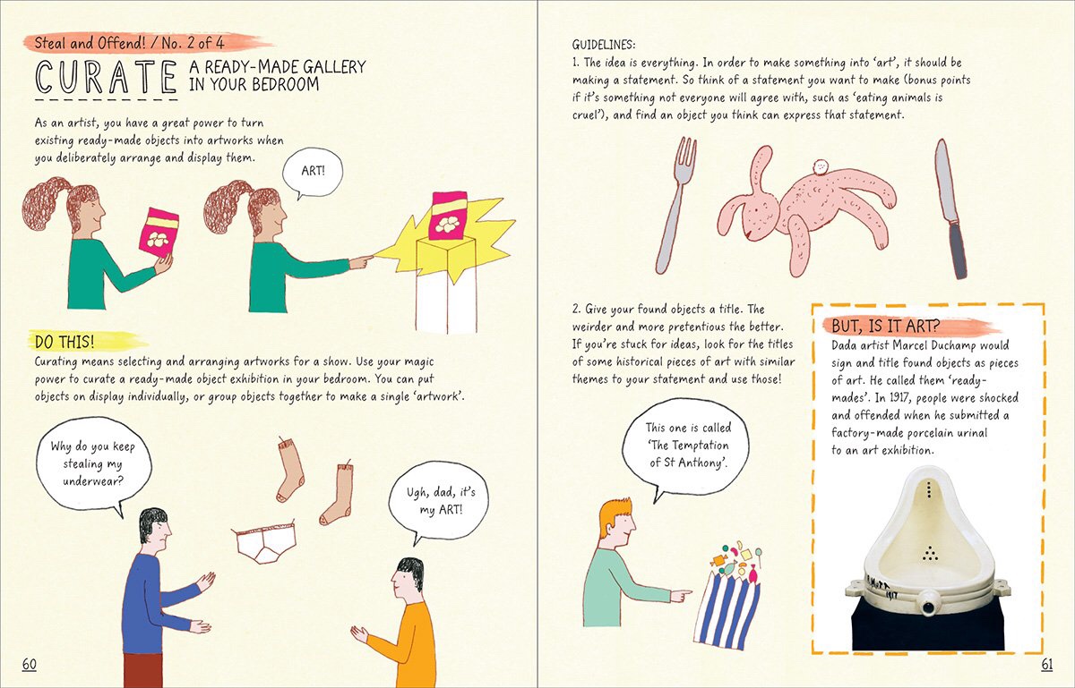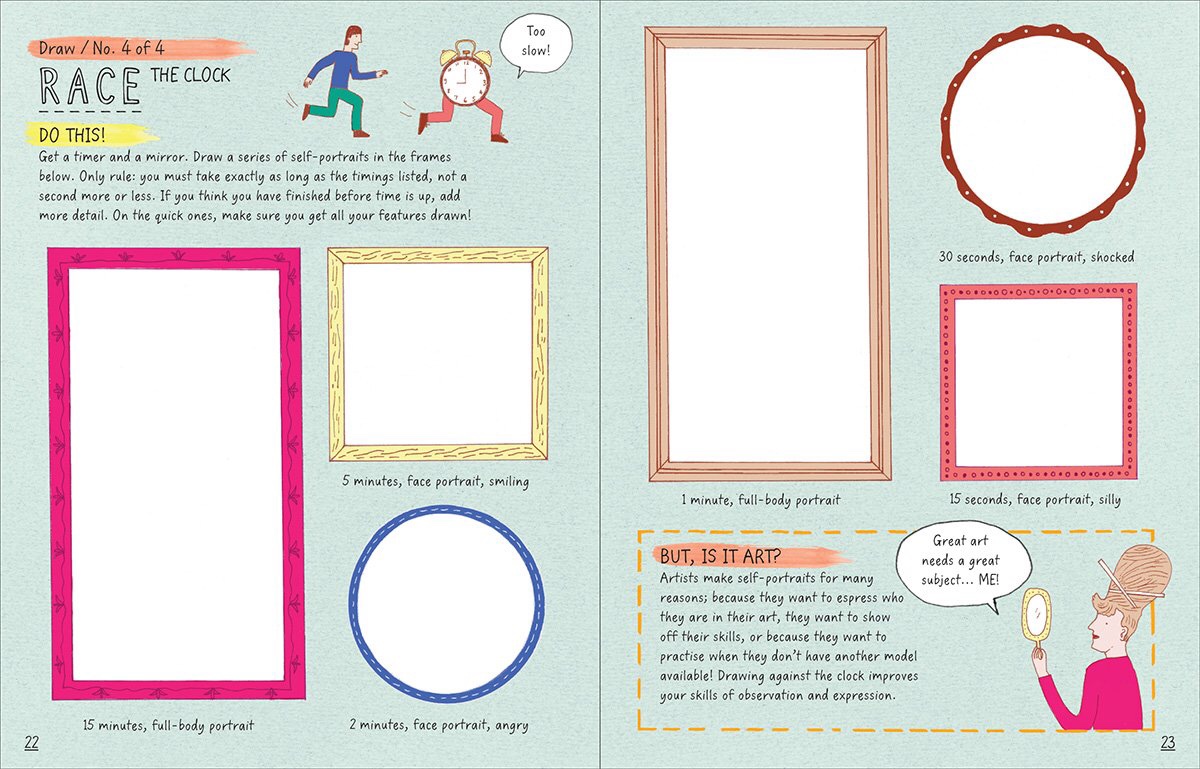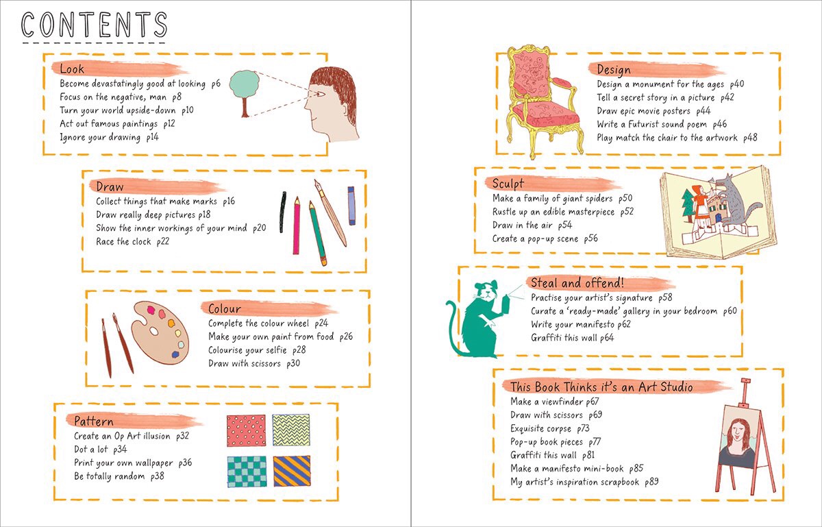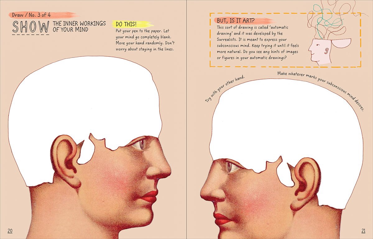 “This Book Thinks You re an Artist is one of the rare books on the market to combine art history with practical activities on the page. It asks the reader to imagine their eccentric-artist alter-ego before working through six key topics: painting, sculpture, illustration, decorative art, photography and contemporary art. Each spread centres on a different technique for producing a piece of art, and relates the activity back to a famous artist or movement in a light-hearted and playful tone. Activities include making a Bruegel circus, playing a Surrealist game, selling a scribble for a million pounds and painting your face like a Russian Futurist. A section of paper-based crafts at the end of the book includes a kit to build a camera obscura.”