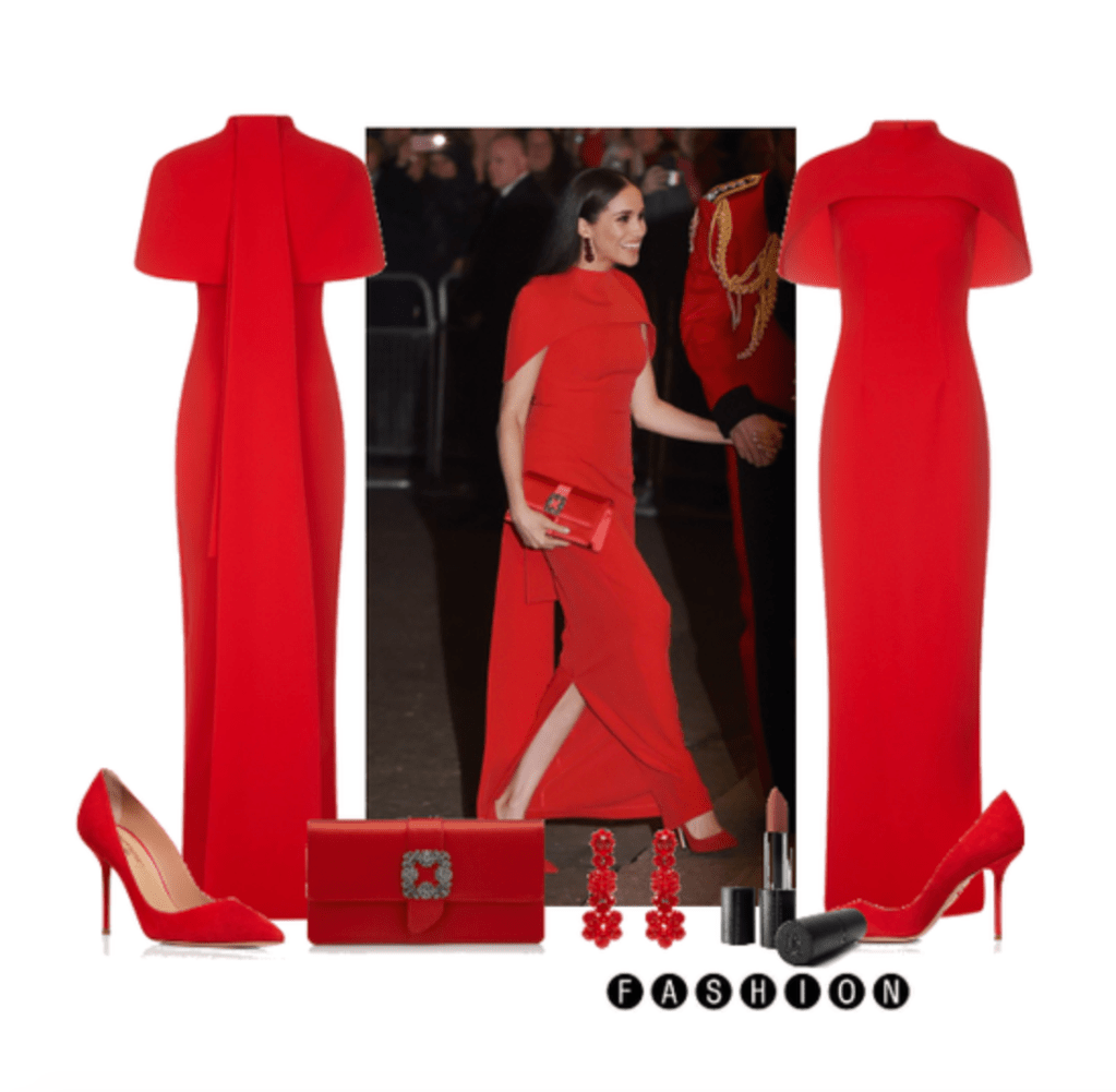 Meghan Markle stunning red gown is by London-based fashion house Safiyaa for an event at the Royal Albert Hall last night