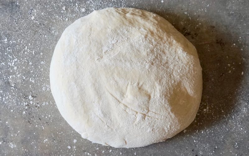 - Once the dough has risen, use your hands to gently deflate it and transfer to a lightly floured surface and knead briefly until smooth (about 3-5 times).