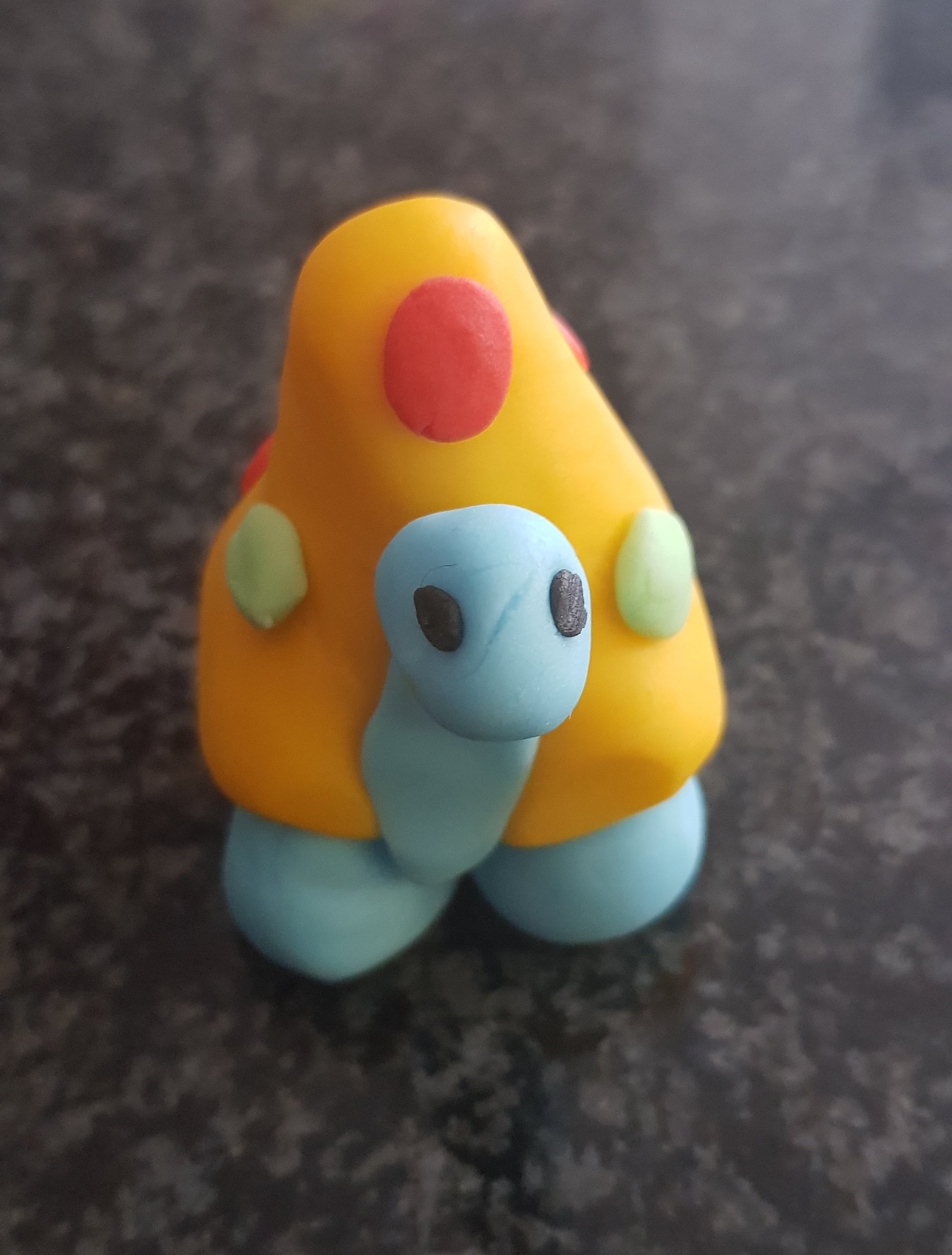 - Then choose colours you would like to put on the back of the turtle and roll out a small piece, then cut out small circles.