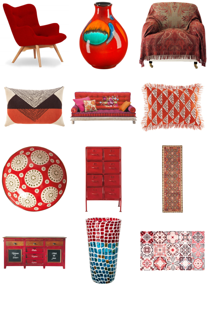 The meaning of red colour in interior design is huge, red being an ideal accent colour, bringing it brings vibrancy and attention to the eye. Red mixed in with vivid colours and prints translate effortlessly onto everything from frocks to furniture.