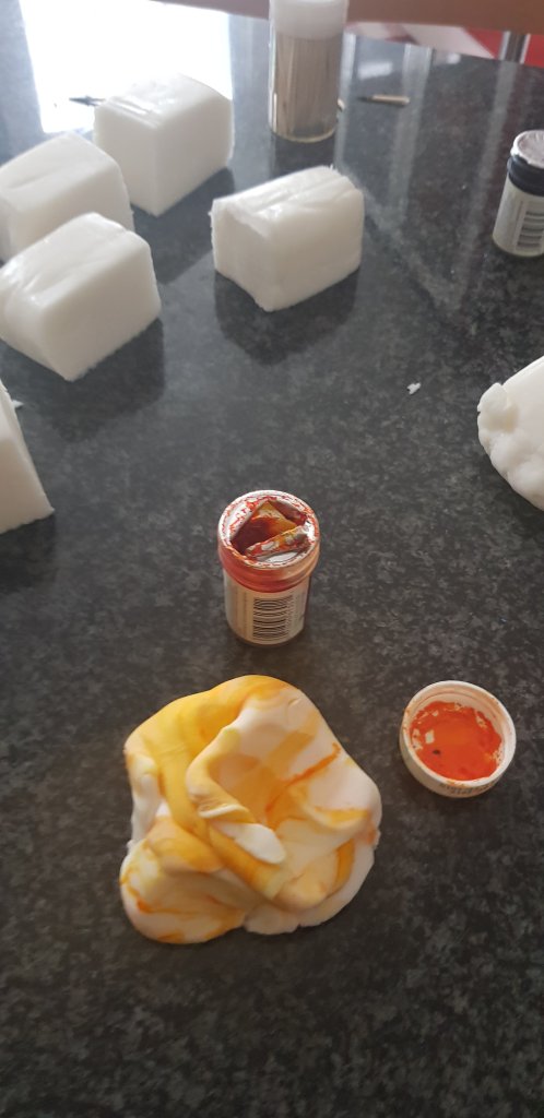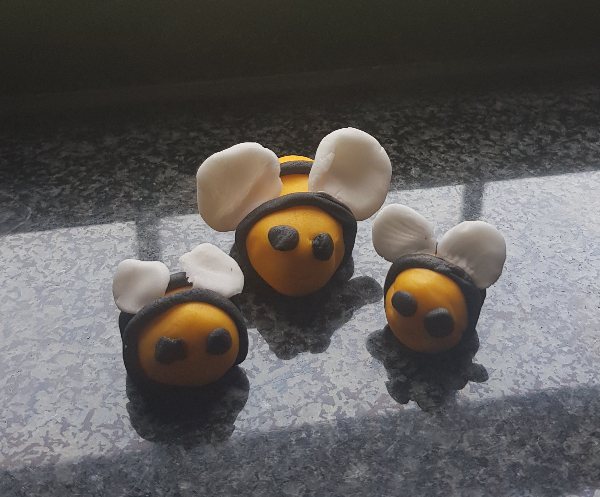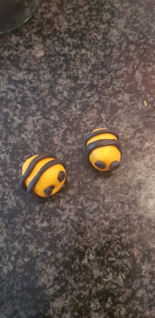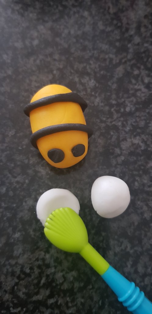 - Divide your fondant into 3, one white, make yellow for the body and black for the eyes, and stripe details o the body.