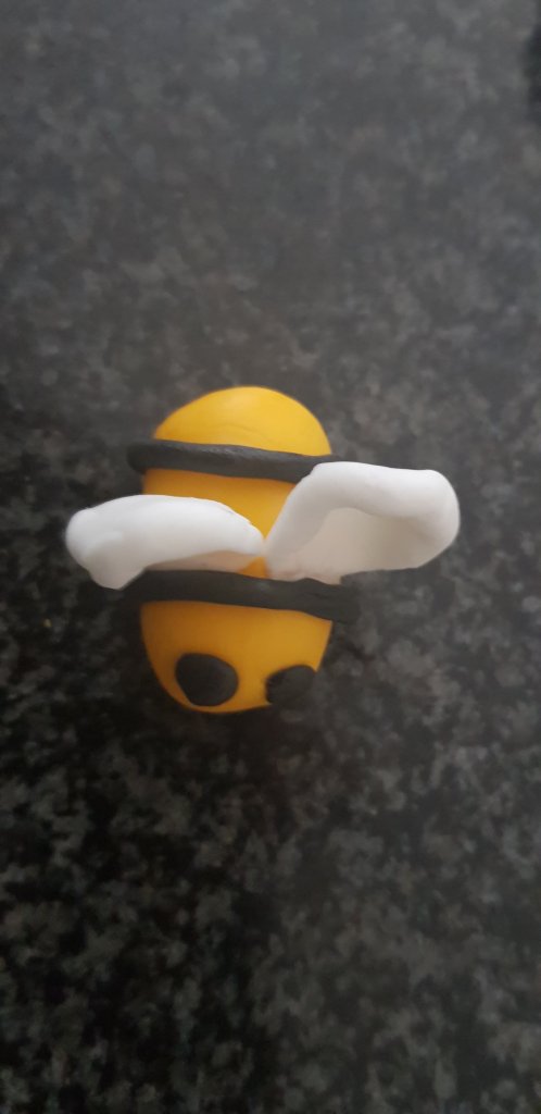 - Roll out a thin stripe, this is to create the wings, wound around the body of the bee.