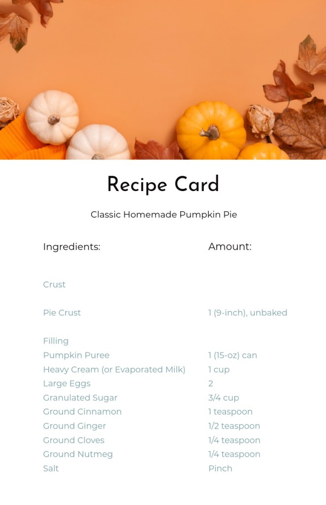 In a big bowl, toss together 1 (15-ounce) can of pumpkin puree (make sure it’s not the pie filling!), 1 cup of heavy cream (or go for evaporated milk for that classic vibe), 2 large eggs, 3/4 cup granulated sugar, and your favorite warm spices.