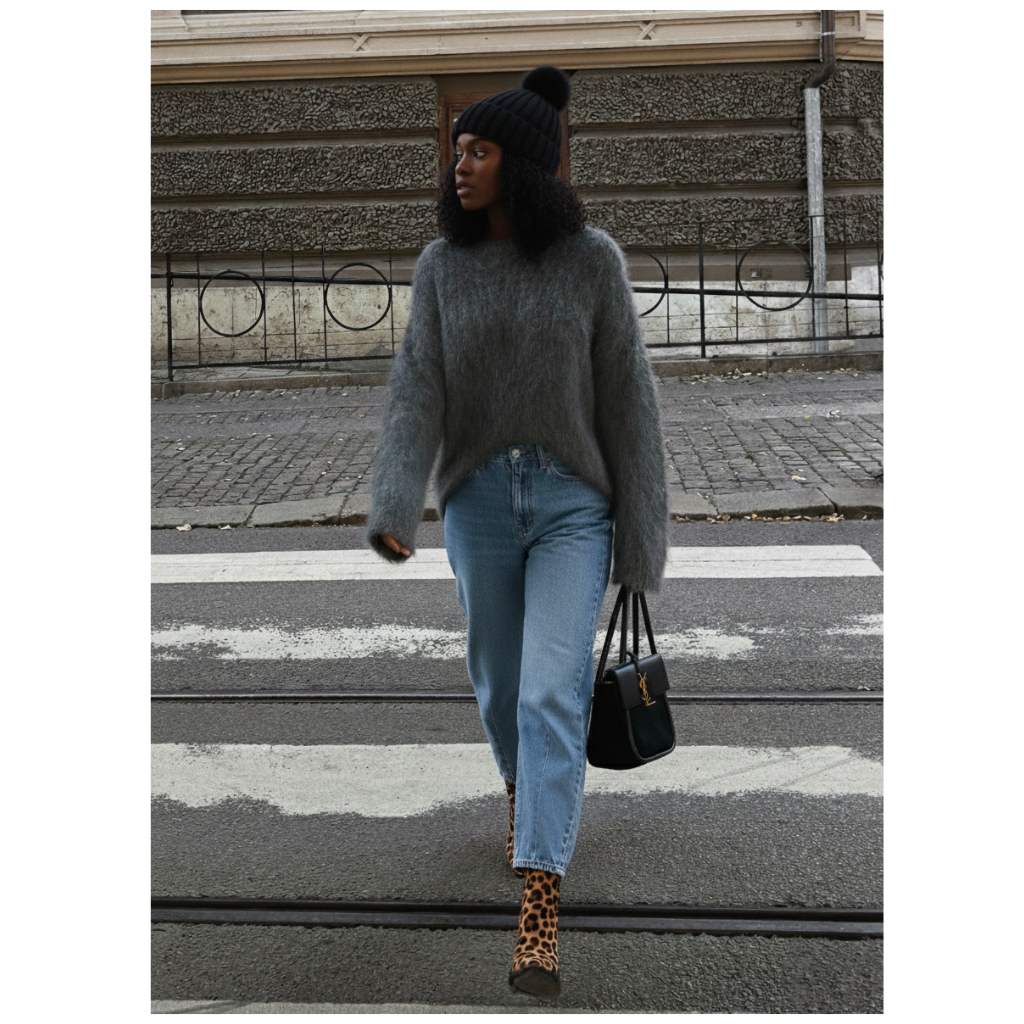1. The Star: The Alpaca-Blend Knit The foundation of this look is a beautiful, oversized alpaca-blend sweater. The beauty of a piece like this lies in its texture and luxurious feel. A chunky, fuzzy knit instantly conveys warmth and comfort, while the slightly oversized silhouette adds a relaxed, modern vibe without being sloppy. Opt for a neutral tone like charcoal grey or oatmeal to maximize versatility.