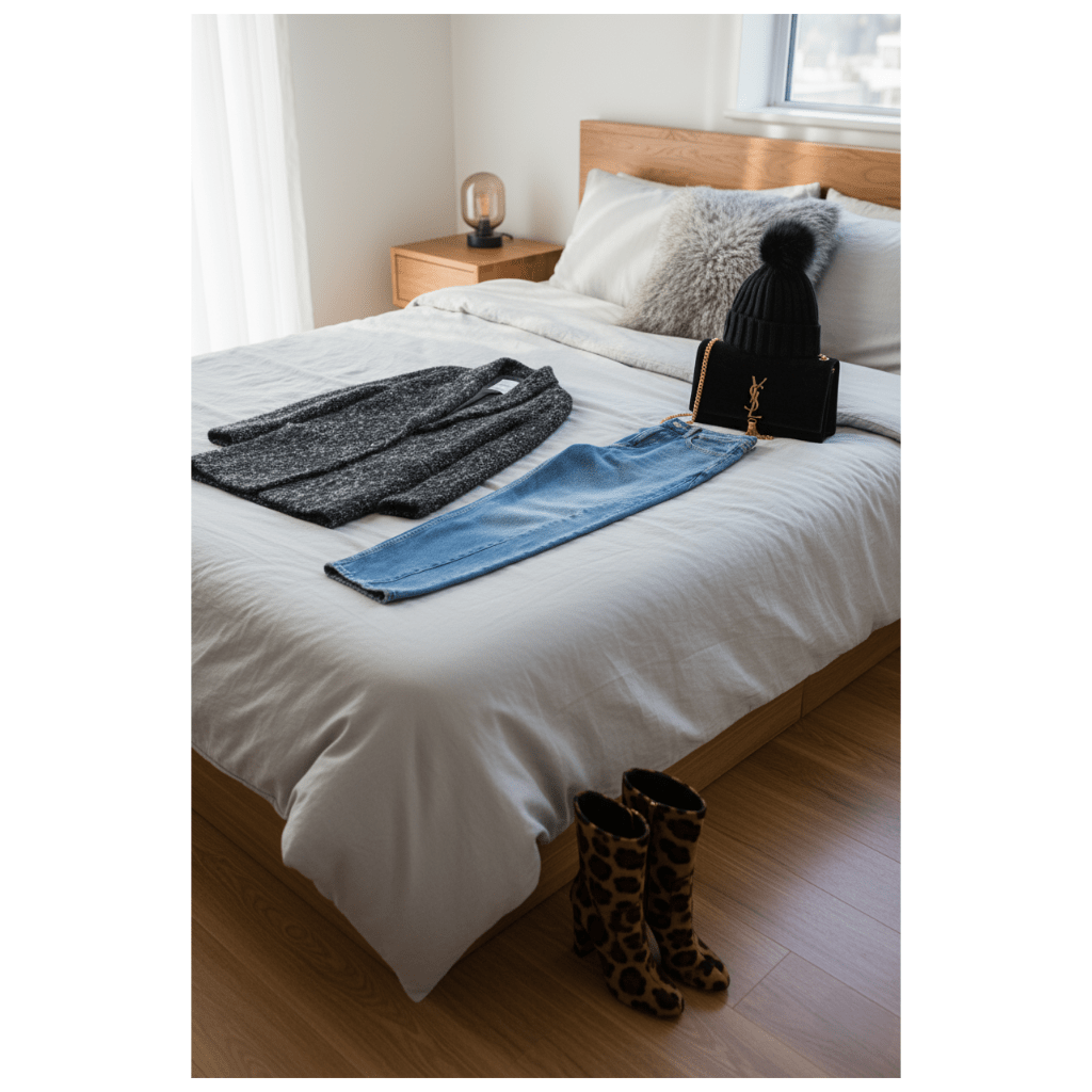 Why This Look Works: This outfit perfectly balances comfort with undeniable style. The soft textures and relaxed fits make it incredibly wearable, while the leopard print boots and structured bag inject high-fashion appeal. It’s an ideal look for a casual weekend, a coffee run, or a stylish stroll in the city when you want to feel great and look even better.