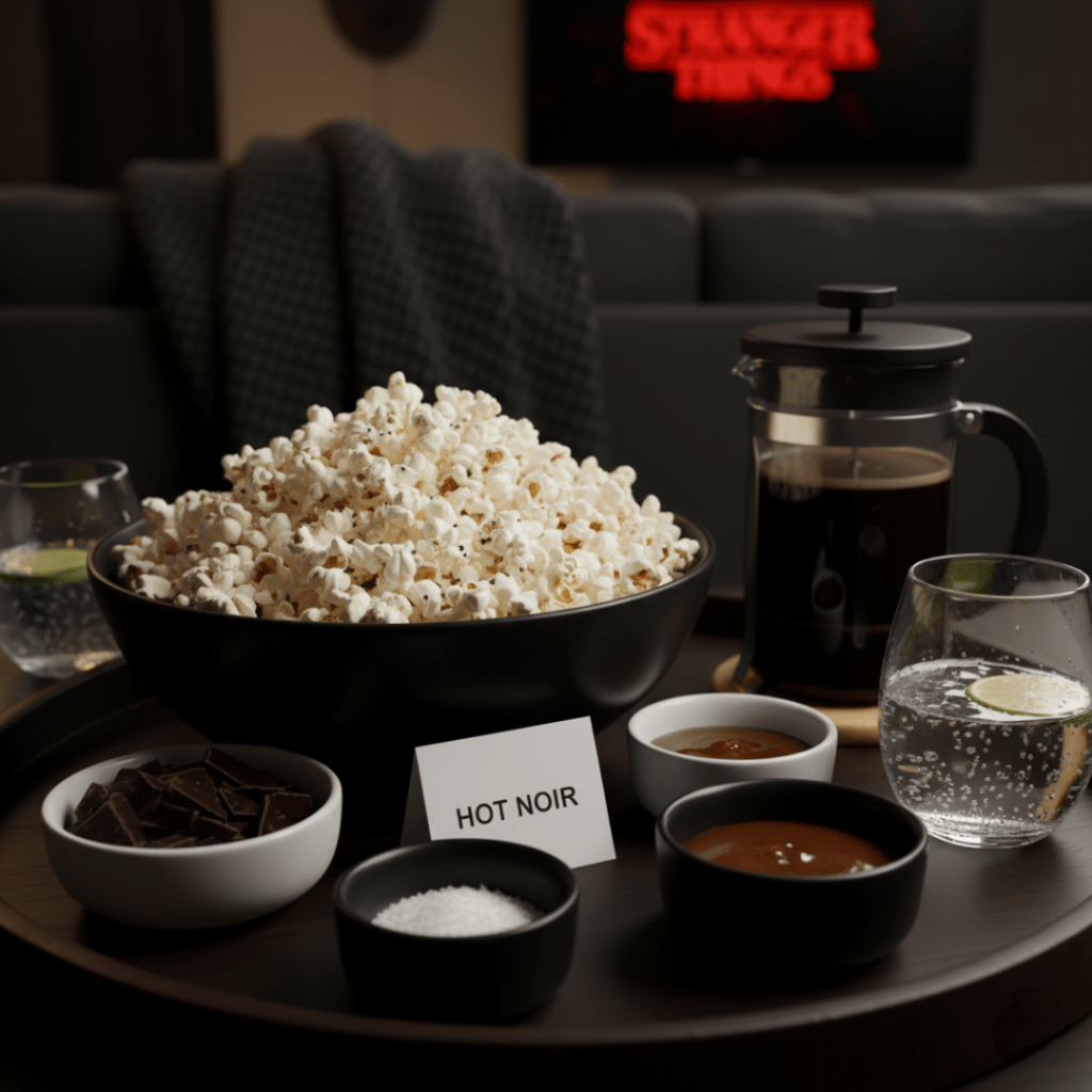 To capture the best movie night vibe, you need the right essentials. We’ve compiled a minimalist list inspired by a sleek, black, white, and red aesthetic that perfectly suits the show’s intense, stylish tone: