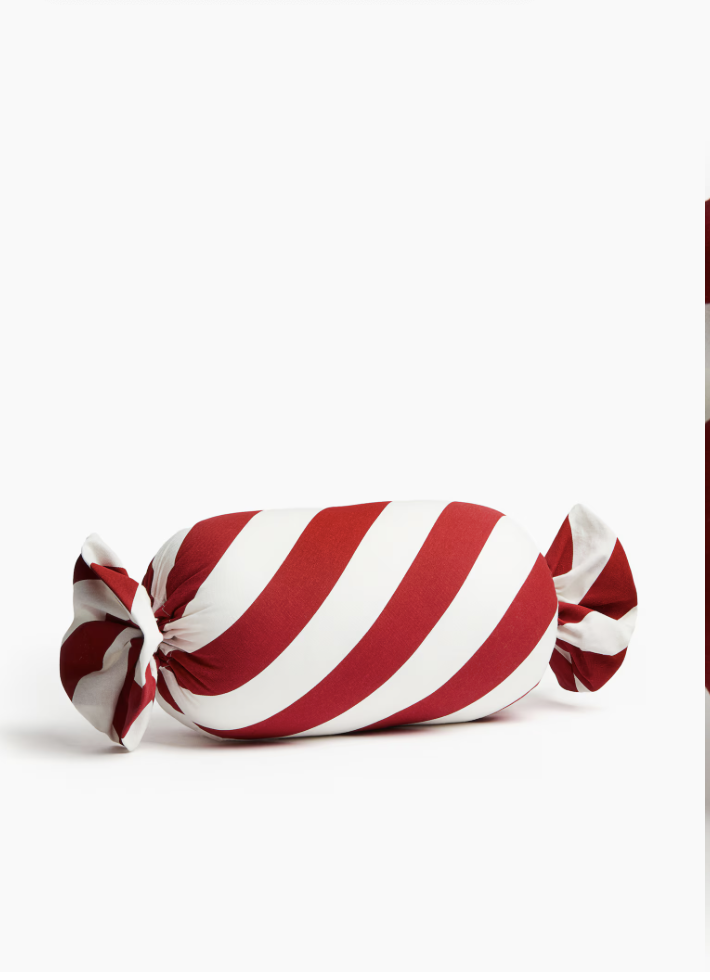 - The Christmas Candy: For a dose of pure, whimsical fun, you absolutely need the oversized candy-shaped pillow! The diagonal red-and-white stripes and tied-off ends make it a perfect, squishy accent for any armchair or sofa.