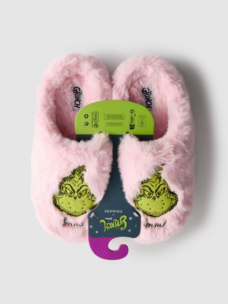 | Slippers | Pink Fluffy Grinch Slippers: Over-the-top comfort in a vibrant pink faux-fur, featuring the Grinch’s embroidered face. Perfect for padding around on Christmas morning. |