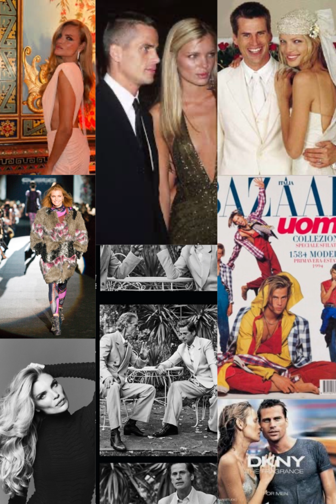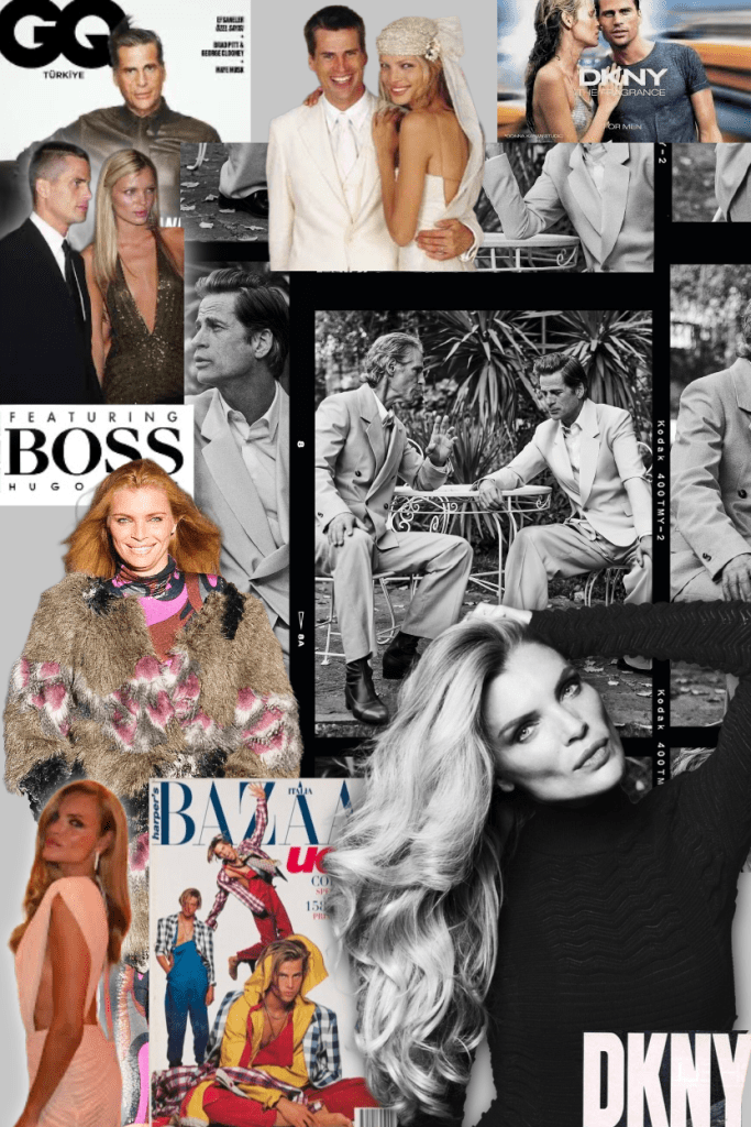 The DKNY Effect: Romance on a Billboard Their relationship was the fashion world’s worst-kept (yet most adored) secret. After crossing paths on a DKNY shoot in 1997, they became the brand’s go-to muses. The Aesthetic: Grainy black-and-white snaps, yellow cabs, and that effortlessly tousled hair. The Vibe: They appeared as two stunning strangers sharing a fleeting moment amidst the hustle of Manhattan. Their wedding in 1999 was the pinnacle of this era—a high-fashion “I do” where they donned Donna Karan, cementing their reign as the decade’s ultimate power couple.