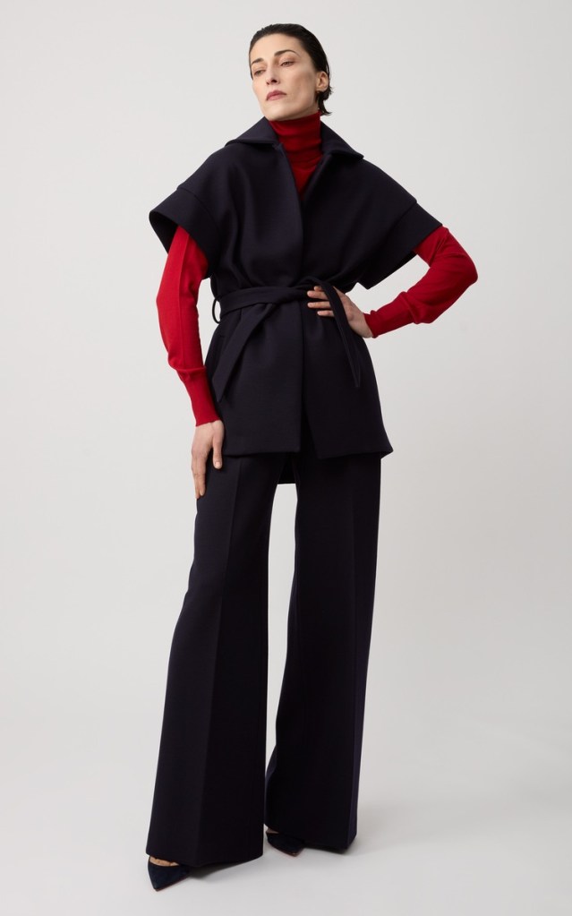 Maticevski Hunt for bonded crepe or scuba fabrics at Solace London or Vesper for that structured, heavy drape.