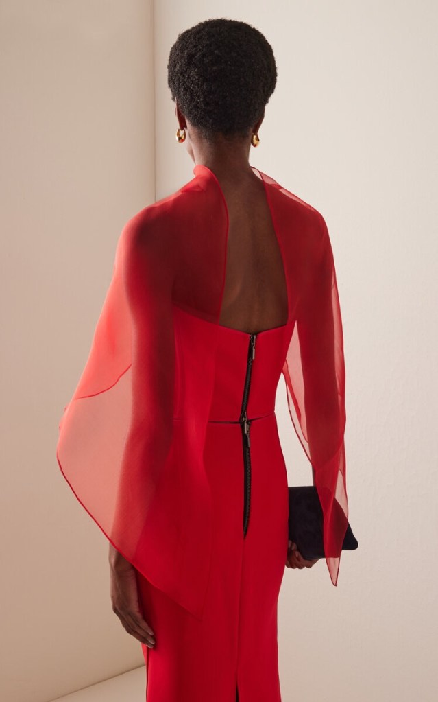 Modern Artistry: Maticevski shapes fabric into breathtaking creations. His red gowns boast magnificent draped open-backs and airy sleeves, ideal for an elegant gala.
